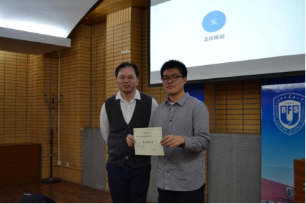 整场比赛,双方辩友你来我往、唇枪舌剑,却又不失风度、侃侃而谈。场上精彩不停,场下掌声不断。比赛结束后,评委们对于本场比赛进行了精彩的点评。最终正方以团体总分1.5分的微弱优势取得了本场辩论赛的胜利。正方四辩2020级的林雨泰同学获得了本场辩论赛的最佳辩手。赛后蔡连侨老师为获奖代表队和最佳辩手颁奖。