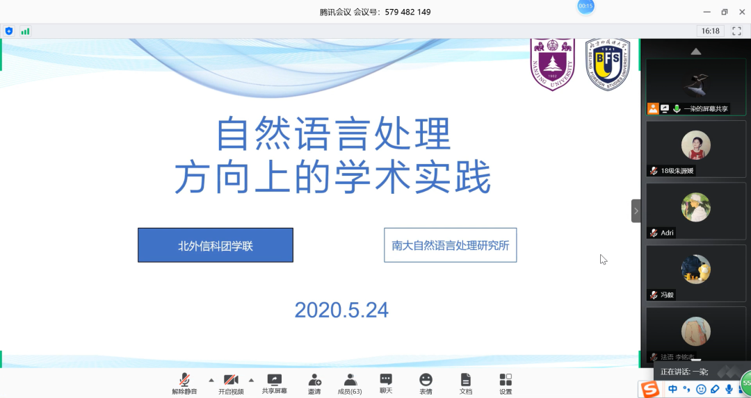 5月24日,主题为“自然语言处理方向上的学术实践”的学术交流讲座在网络平台成功举办。讲座邀请到了南京大学自然语言处理研究组19级直博生朱文昊、19级硕博连读生汪然、17级硕士研究生孙泽维、16级本科实习生岳翔为同学们分享了他们在学术发展方向的一些经验和心得体会,解答同学们的疑问。