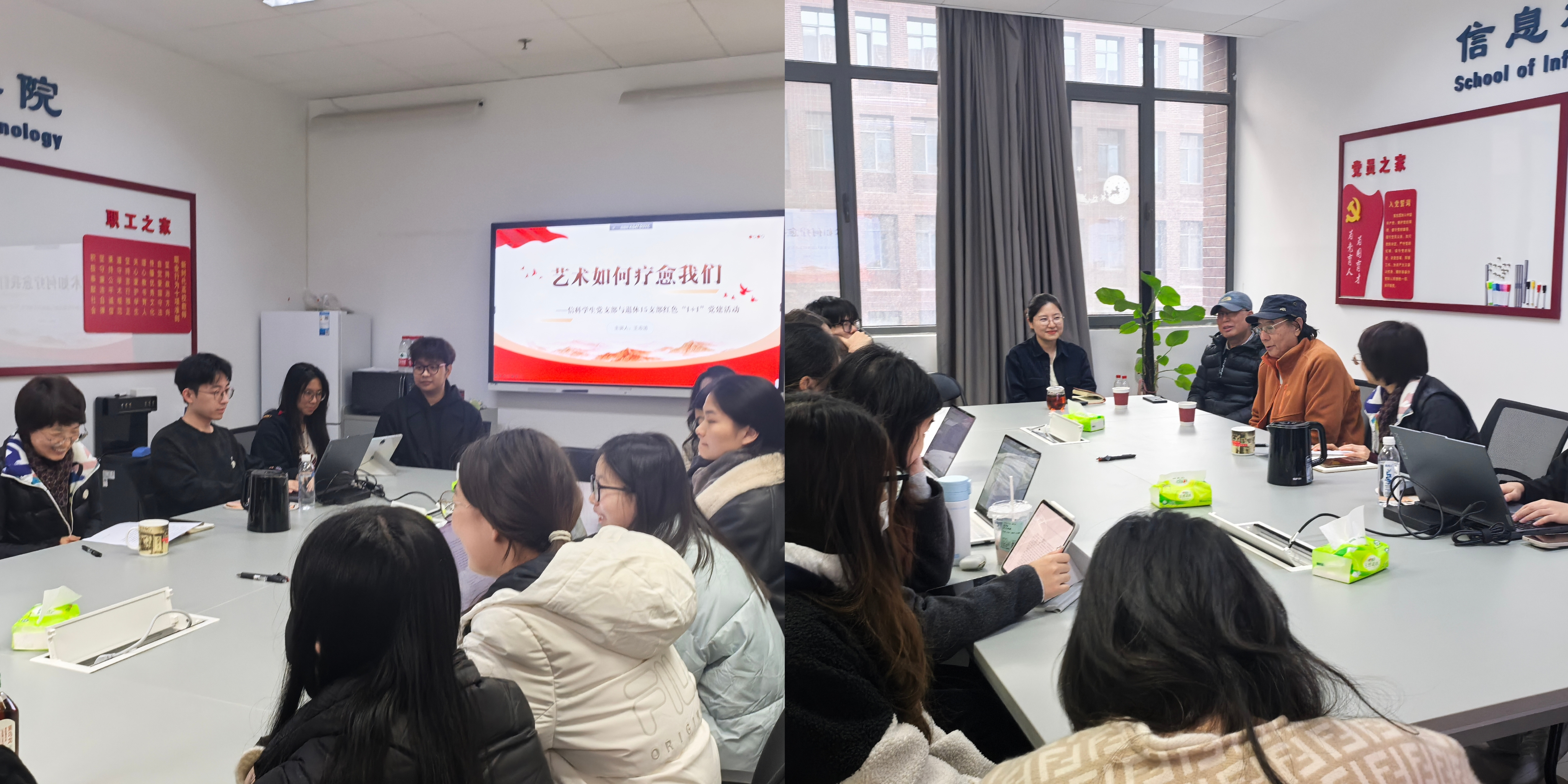 2025年11月5日,信科学院于国际大厦812室隆重举行了“红色1+1”共建活动暨“艺术如何疗愈我们”主题报告会。本次活动特邀学校离退休工作处退休15支部成员、中国美术家协会会员王志洁老师担任主讲嘉宾。退休15支部书记李斌老师、学院党总支副书记刘玉华老师、学生党支部书记兼辅导员赵韵怡老师,以及部分党员发展对象和入党积极分子共同出席了本次活动。