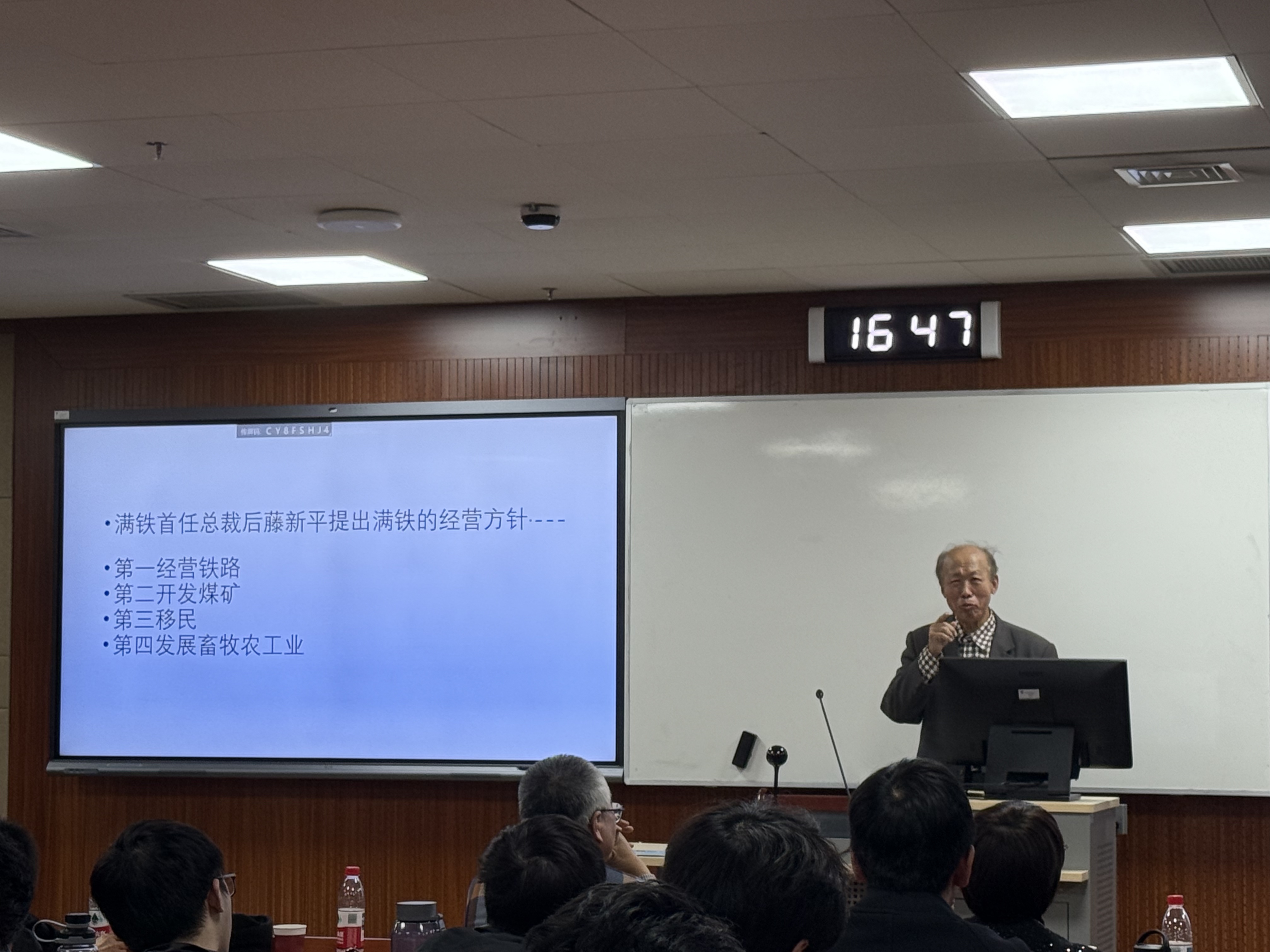 接着,汪玉林老师结合个人研究与亲身经历,围绕“战争记忆与和平愿景”主题展开分享。他揭露了日本“开拓团”强占中国东北150万公顷耕地的殖民历史,指出其“二十年百万户移民计划”的侵略本质。汪老师还讲述了战争遗孤的苦难经历,以及中国政府和人民以人道主义精神善待日本战俘的史实。他分享了与四位日本老兵面对面交流的经历,从双重创伤的视角,深刻揭示了战争对中日两国人民造成的深远伤害。