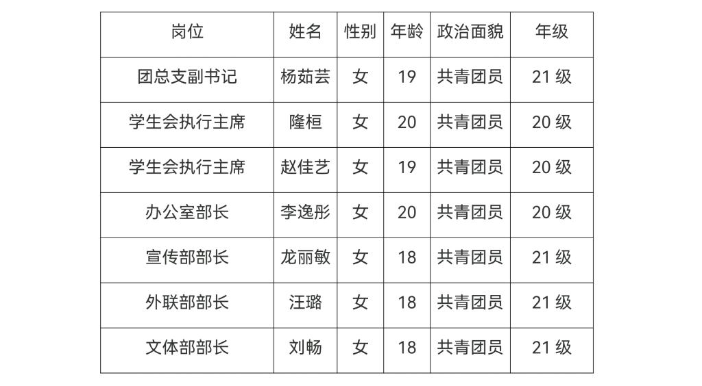 依据《beat365英国官网网站团总支学生会主席团部长团遴选通知》安排,经过自主报名、资格审查、公开遴选、答辩等环节,beat365英国官网网站(以下简称“信科学院”)党政负责人、教师代表、第三届主席团和部长团以及学生代表共同参与、公开投票,按投票结果产生信科学院团总支学生会第四届主席团和部长团,现将换届结果公示如下: